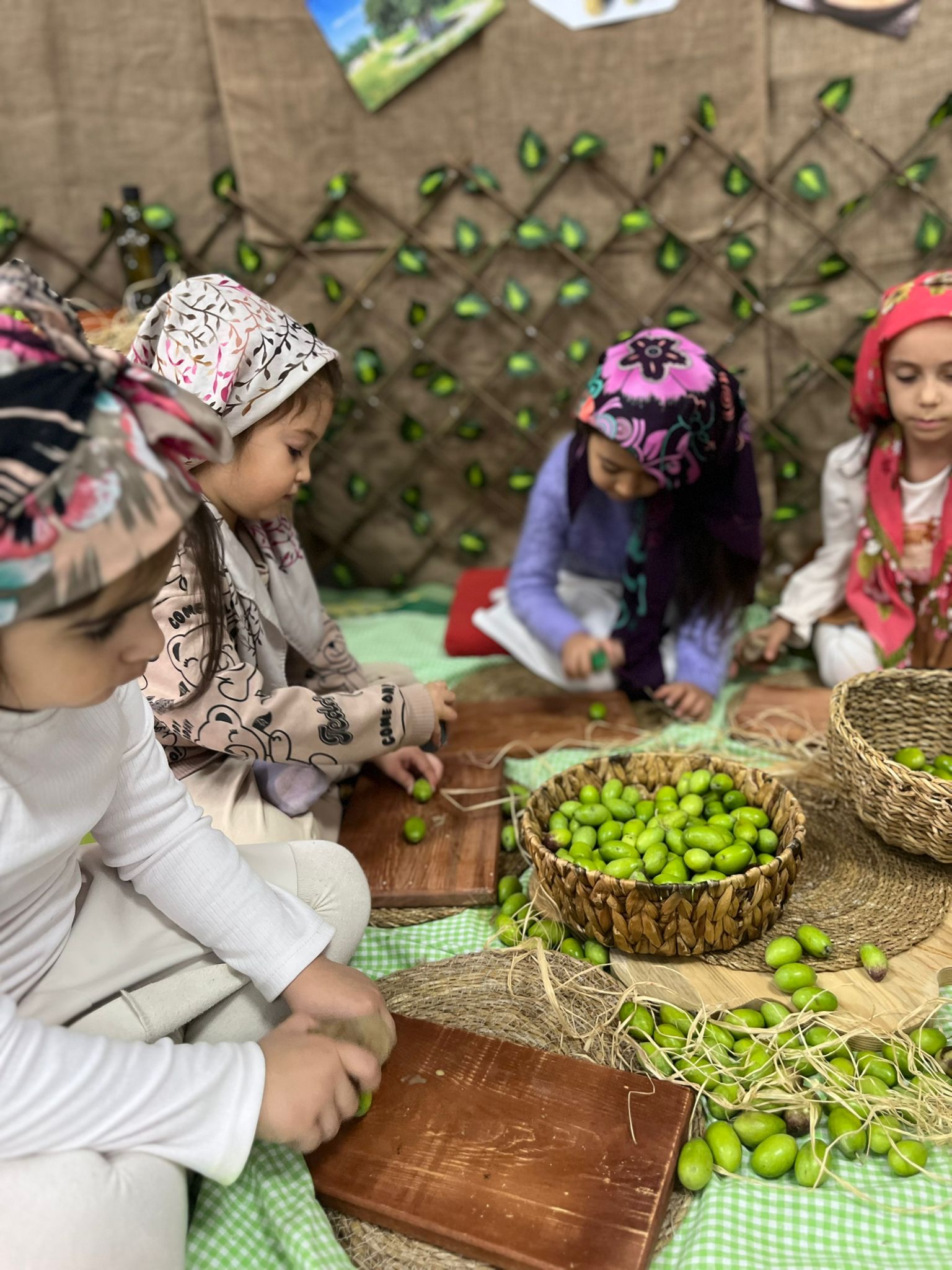 Minik şeflerimizin ellerinde zeytin kırma etkinliğimiz..